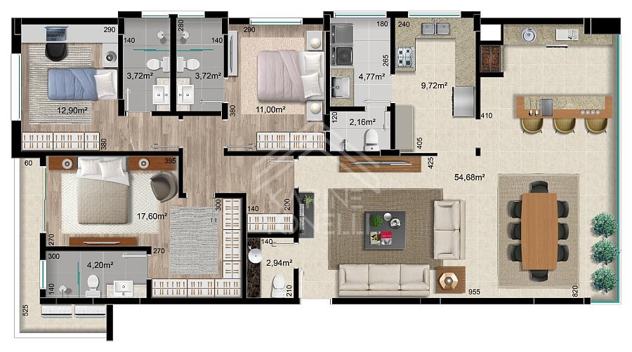 3 dormitórios (3 suítes)